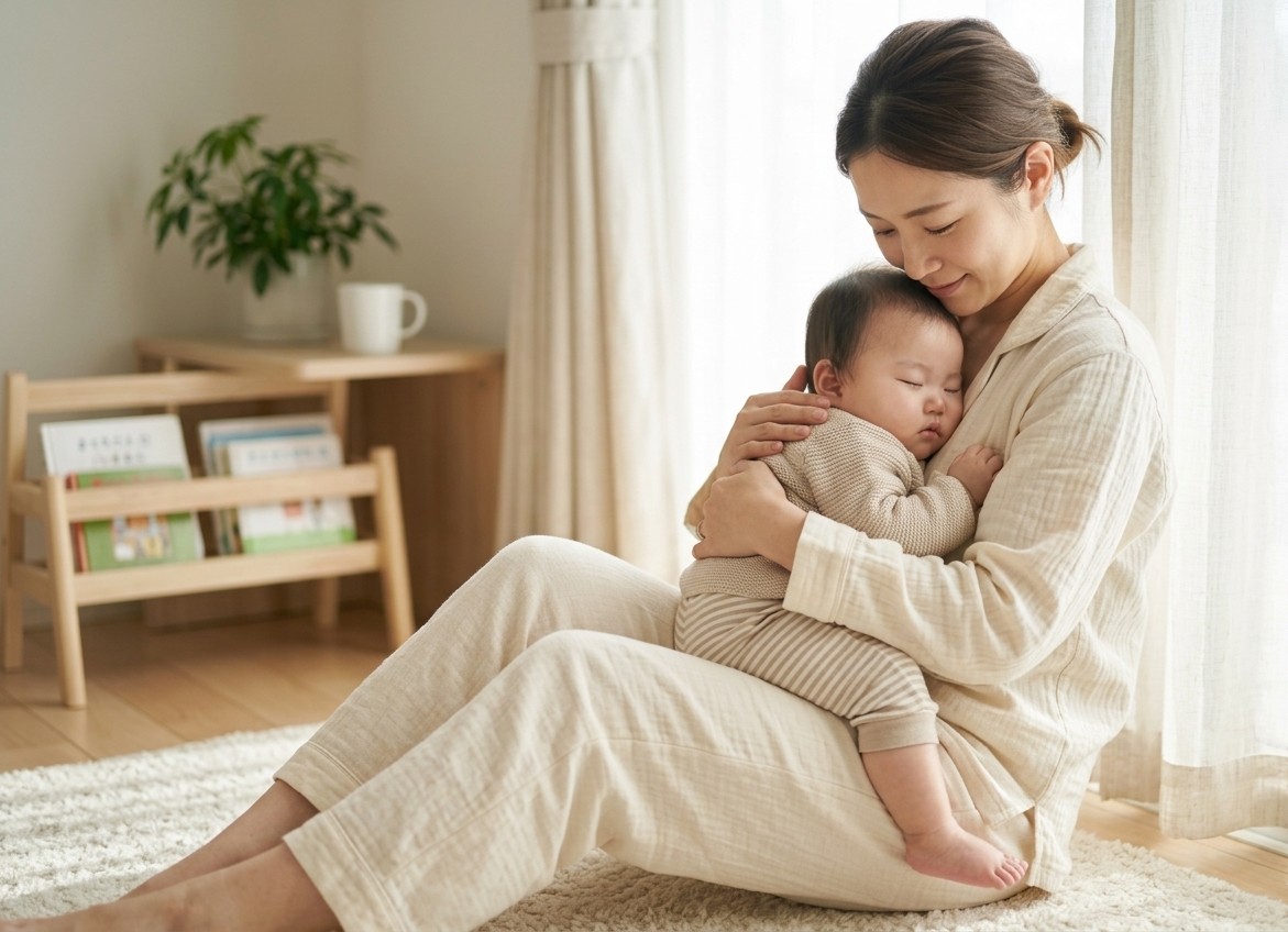 忙しい日々の中で、ほんの一瞬でも「自分に戻れる」心地よさを。最高級のパジャマが、あなたの健やかな育児を支えます。